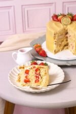 Nosso bolo de morango é uma verdadeira tentação para os amantes de frutas frescas. Feito com uma massa leve e macia, é recheado com um generoso creme de ninho e morango fresco. Cada fatia é uma explosão de sabor, combinando a doçura natural dos morangos com a suavidade do creme ninho, criando uma experiência irresistível para o paladar. Finalizado com uma cobertura delicada de brigadeiro de ninho e morangos inteiros, este bolo é a escolha perfeita para qualquer ocasião especial.