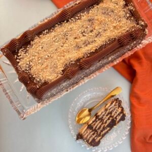 Um clássico português muito elogiado em nossa loja! Tem uma textura macia e sabor predomenante de nozes. É finalizado com uma fina camada de fondant.
