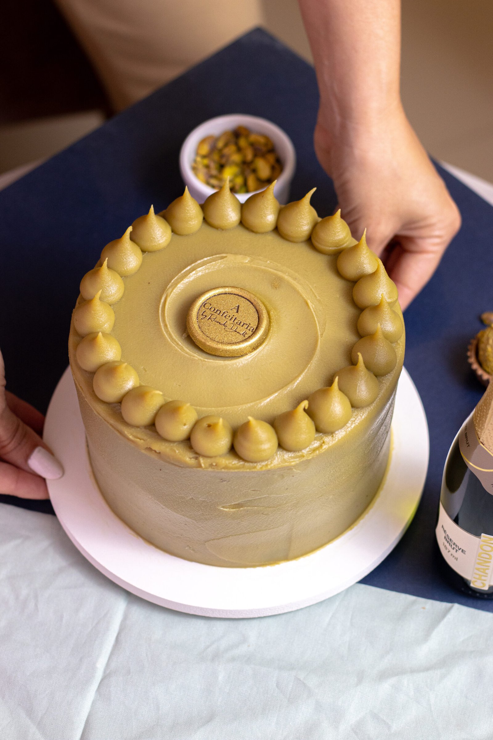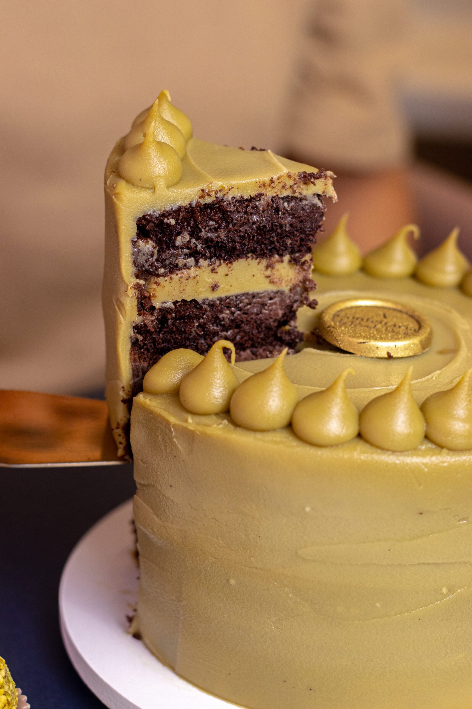 Massa de chocolate, recheada com brigadeiro de pistache e brigadeiro ao leite, criando um contraste equilibrado entre intensidade e cremosidade. Finalizado com brigadeiro de pistache, destacando o sabor marcante do pistache em cada fatia. Uma combinação deliciosa e cheia de personalidade.